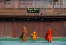 早朝:ご希望であれば●ビューポイントから朝日鑑賞又は●托鉢体験 (※ビューポイントは途中、乗り合いバスに乗り換えます。お一人様=B40別途要) (※托鉢のお供え物は別途有料) ホテルに戻りご朝食 独自の生活習慣や手織り&刺繍などの高い技術を持った ●エアーアジア3542便(17:25~18:25) にて、空路バンコクへ |